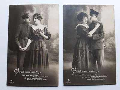 2 x AK Postkarte beschrieben 1919 Militär 1 WK Vergiß mein nicht !