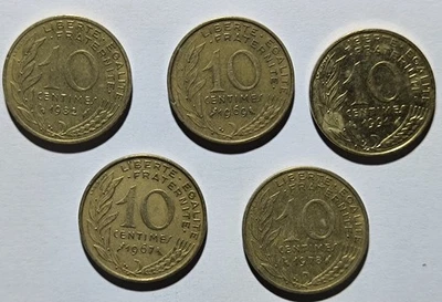 5 x 10 Centimes aus Frankreich Umlaufmünzen 1982 / 1969 / 1978 / 1994 und 1967