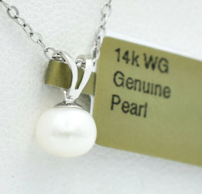ECHTE WEISSE PERLEN ANHÄNGER 14K WEISSGOLD - MADE IN USA - Neu mit Etikett