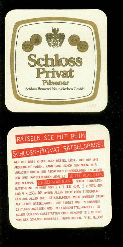 Bierdeckel Schloss Privat (7) Bier, Bière, Brauerei, Neunkirchen, Saar Saarland