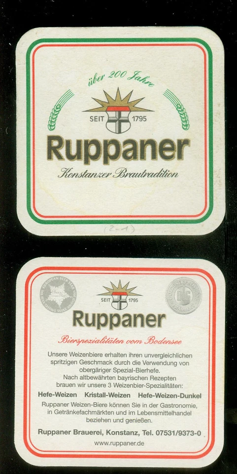 Bierdeckel Ruppaner (2) Bier, Brauerei, Konstanz, Bodensee, Baden-Württemberg