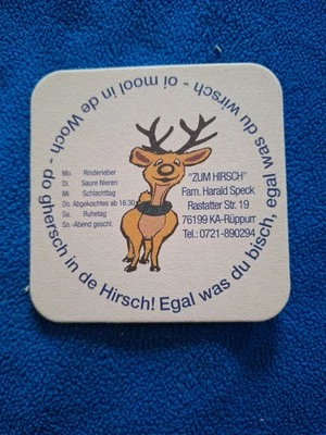 Bierdeckel Karlsruhe Rüppurr - Gasthof Zum Hirsch - Harald Speck - Hoepfner