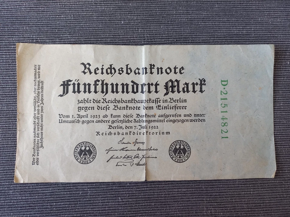 Reichsbanknote, 500 Mark, 1. April 1923, D•21514821
