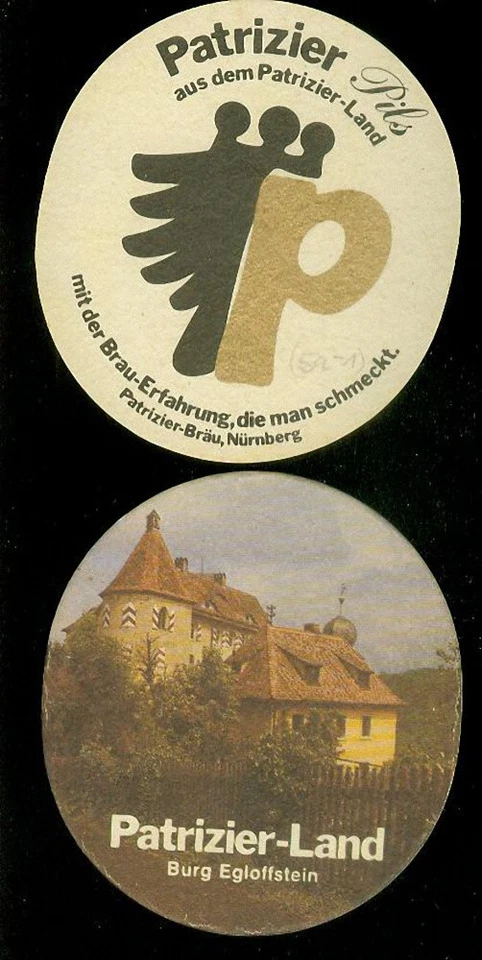 Bierdeckel Patrizier (2) Bier, Bière, Brauerei, Nürnberg, Mittelfranken, Bayern