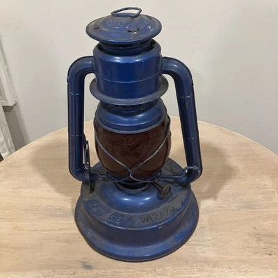 Vintage Dietz kleiner Zauberer Laterne blau Metall Laterne mit roter Kuppel C