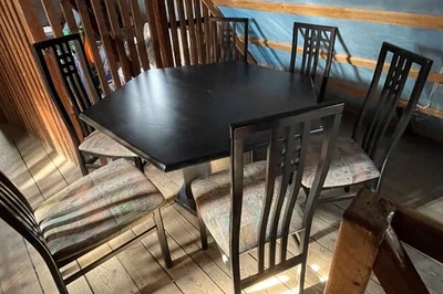 Wohnzimmertisch, ausziehbar, mit 6 Stühlen (schwarz)