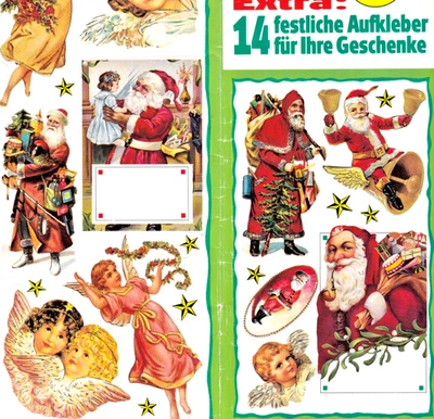 14 festl. nostalg. Weihnachts-Aufkleber für Geschenke,farbig, selbstklebend, NEU