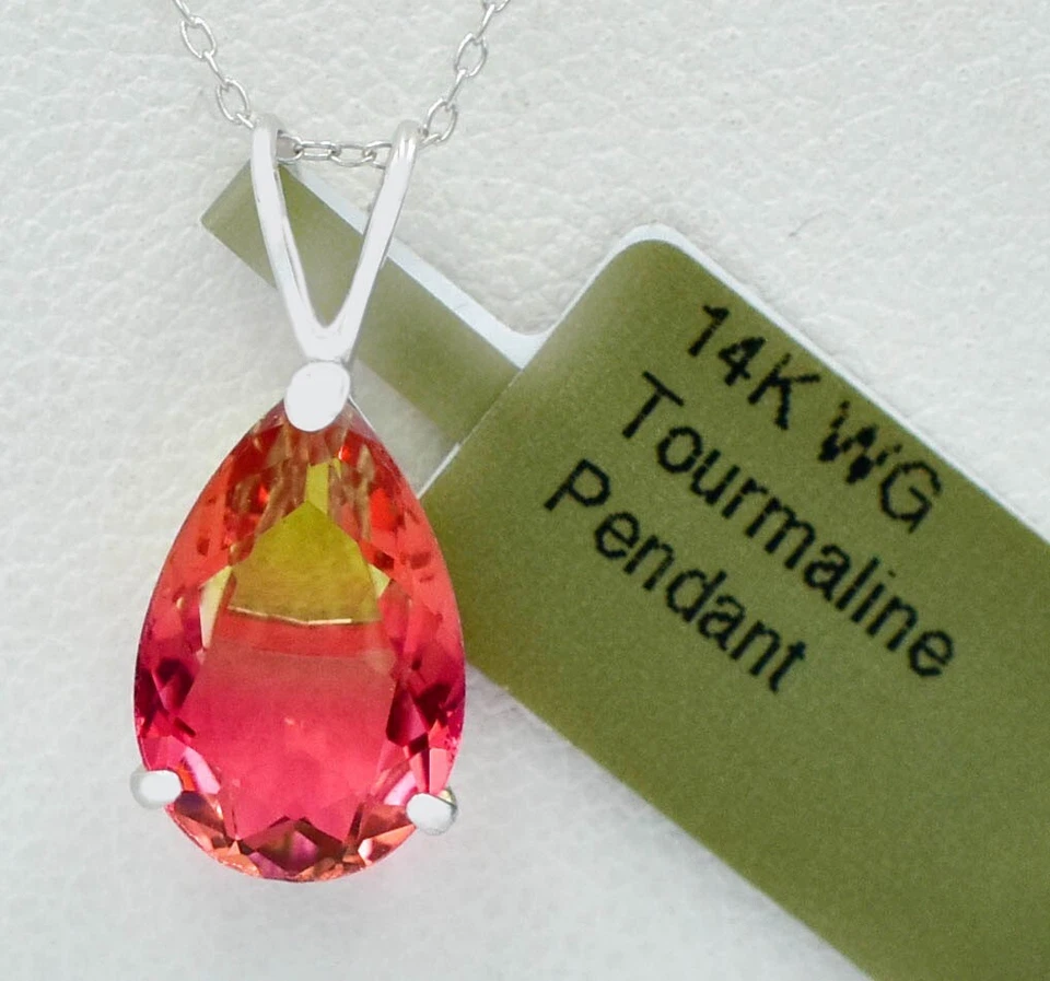 LAB 4,45 kt AAA TURMALIN ANHÄNGER 14k WEISSGOLD - neu mit Etikett - HERGESTELLT IN USA
