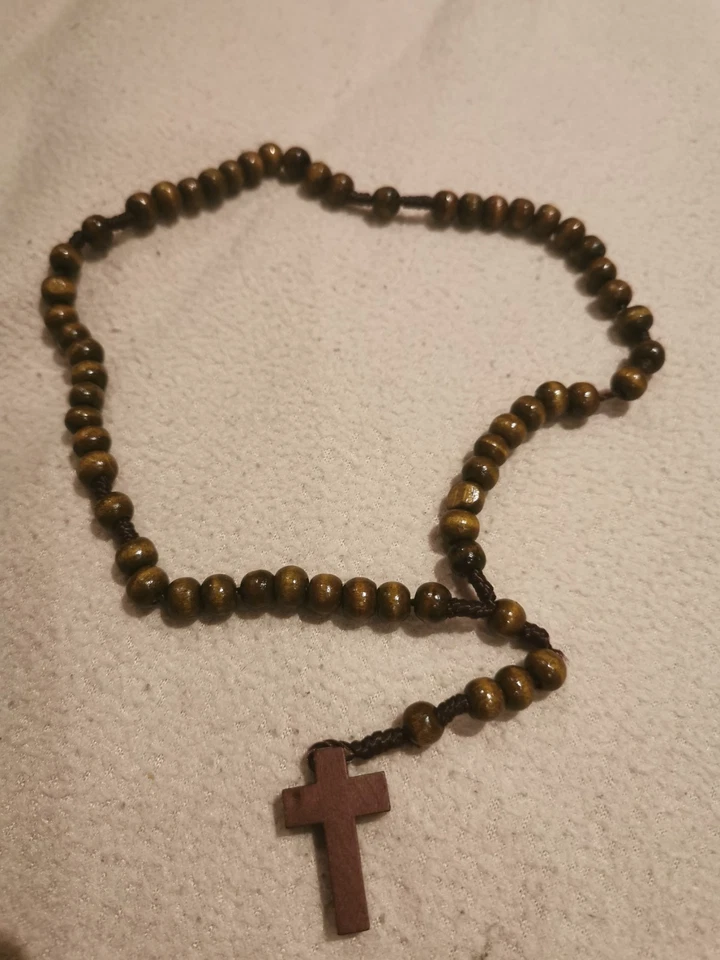 Rosenkranz ,Holzperlen mit Holzkreuz, Holzrosenkranz , Braun, Neu