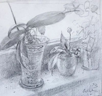 GERRY MILLER-Originalzeichnung "Plants" Graphite Pencil on paper.14x14cm