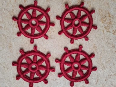 Aufnäher Patch Steuerrad Schiffssteuerrad maritim rot 4 Stück Durchm. 4 cm