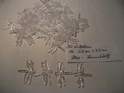 50 Stück flache Kunststoff-Formen mit Relief - "tranparente Libellen"