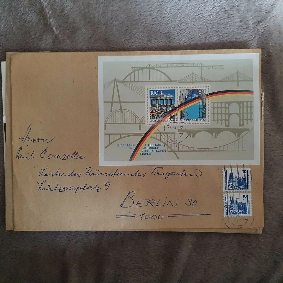 Deutsche Einheit 1989, Kompletter Bogen auf Brief, gestempelt