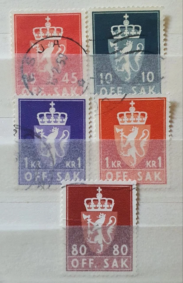 5 Werte Dauerserie Wappen 60er gestempelt Konvolut Briefmarken Norwegen Sammlung