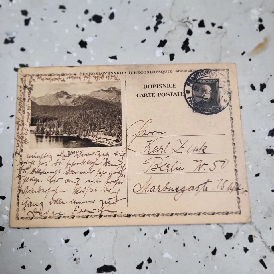 Markenaufdruck 1,20 Kronen Tschechoslowakei 30er Jahre Postkarte antik