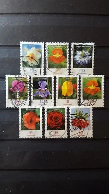 Bund Blumen Rollenmarken mit Nummer gestempelt 10 verschiedene N33