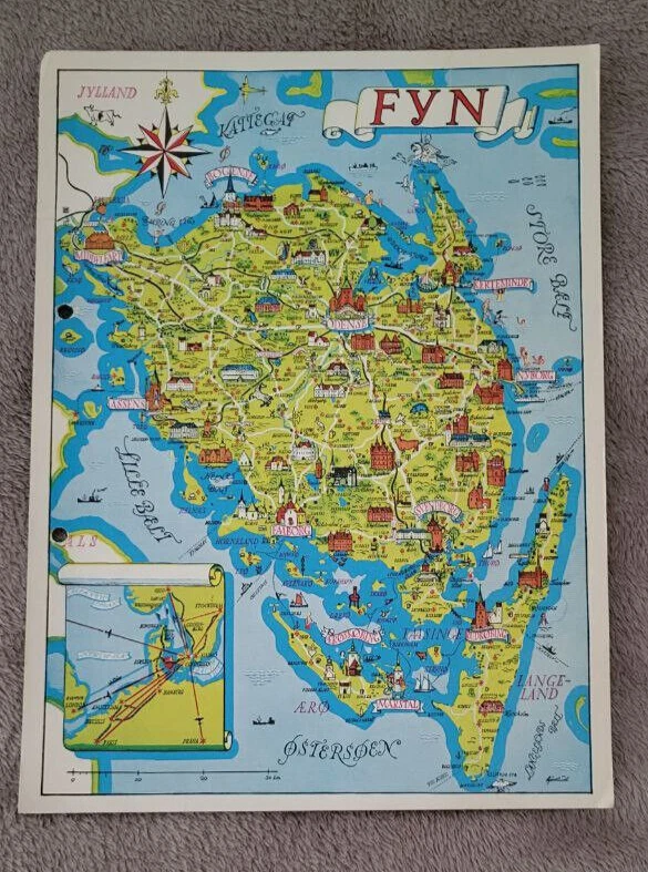 ca DIN A4 große Postkarte der Insel FYN , Fünen, Dänemark , gelocht aber unbesch