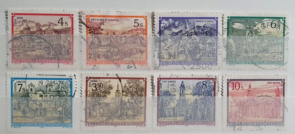 8x Dauerserie Klöster gestempelt Konvolut Briefmarken Österreich Sammlung