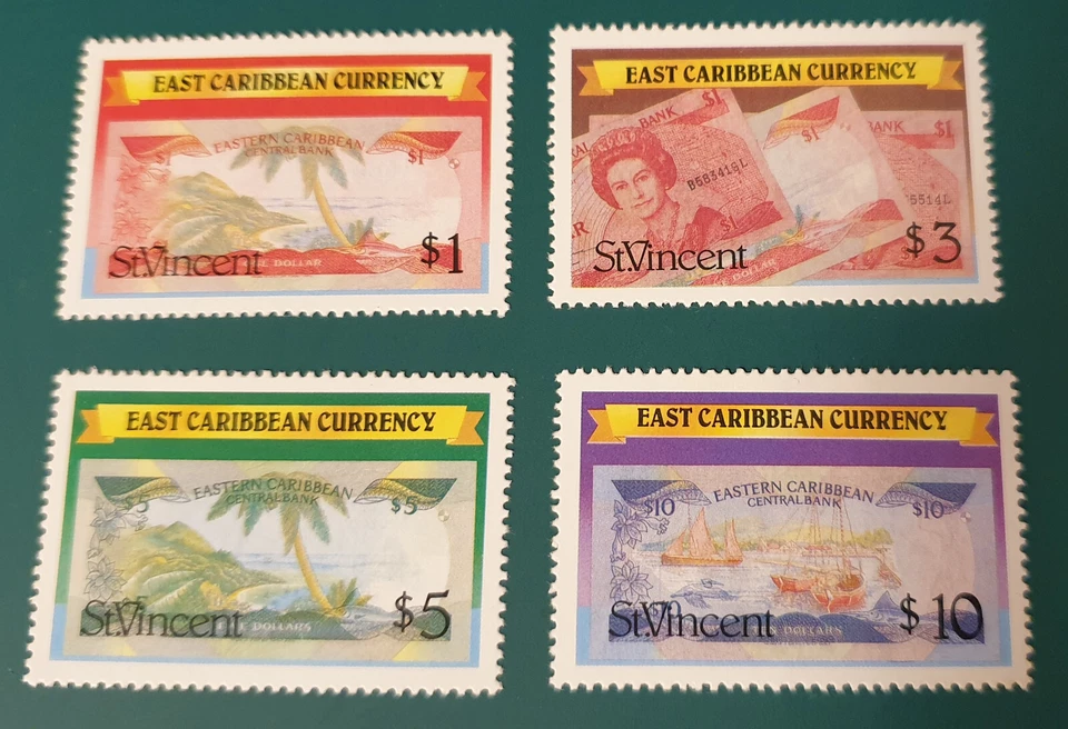 St. Vincent 4 Marken "East Caribbean Currency" 1$, 3$, 5$ und 10$ postfrisch