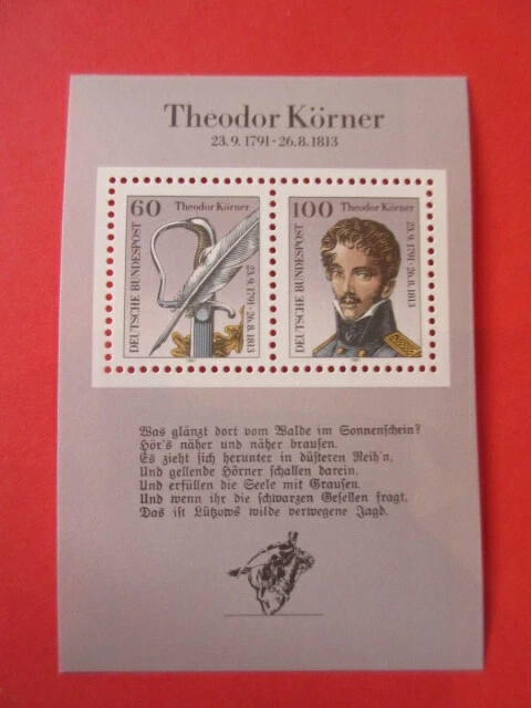 Bund MiNr. 1559/60 Block 25 Th. Koerner 200. Geburtstag. postfrisch