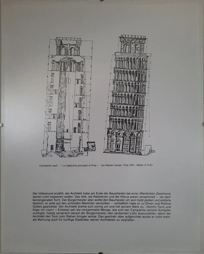 Blatt aus Reiseführer "Schiefer Turm" in rahmenlosen Bilderrahmen