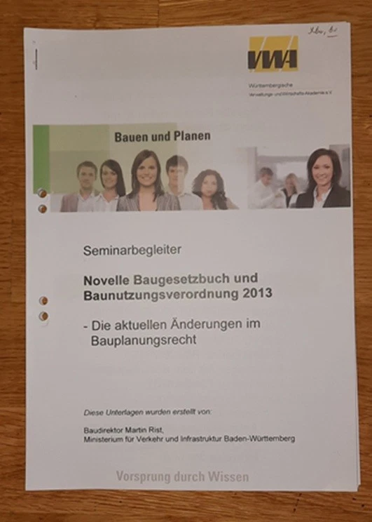 VWA-Seminarbegleiter "Novelle Baugestzbuch und Baunutzungsverordnung 2013"
