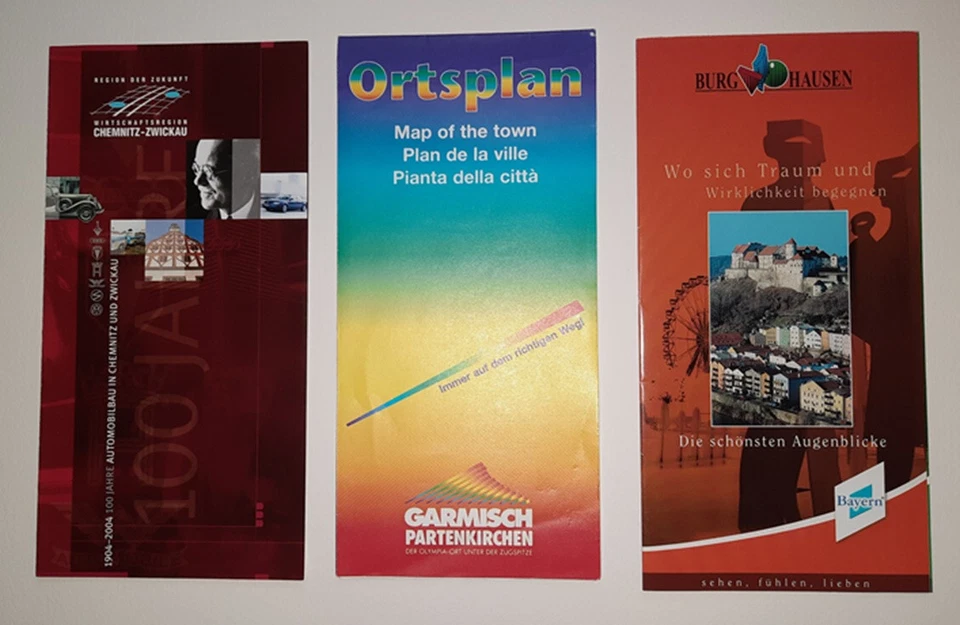 3 Flyer / Broschüren über Burghausen, Garmisch und Zwickau, deutsch, neu