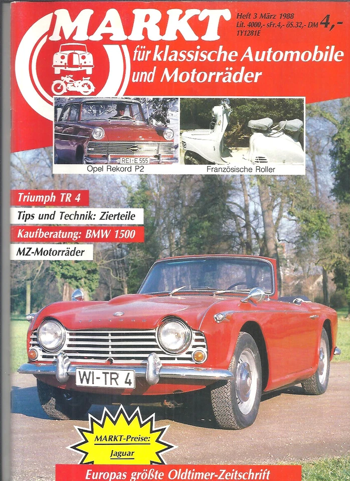 Markt für klassische Automobile und Motorräder Heft 4 April 1988 gut erhalten