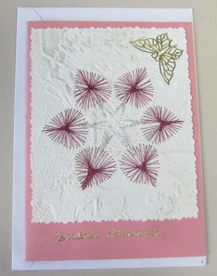 Grußkarte - Fadengrafik "Herzlichen Glückwunsch" reine Handarbeit ; Format A6