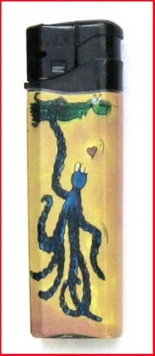 MK Feuerzeug (13) - Elektronik-Feuerzeug in hellbraun mit Quallen-Motiven
