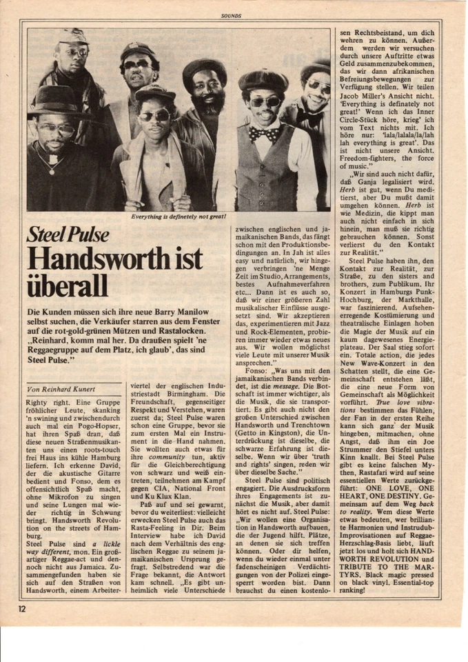 STEEL PULSE - Clipping/Bericht aus dem Jahr 1979 - Musikzeitschrift