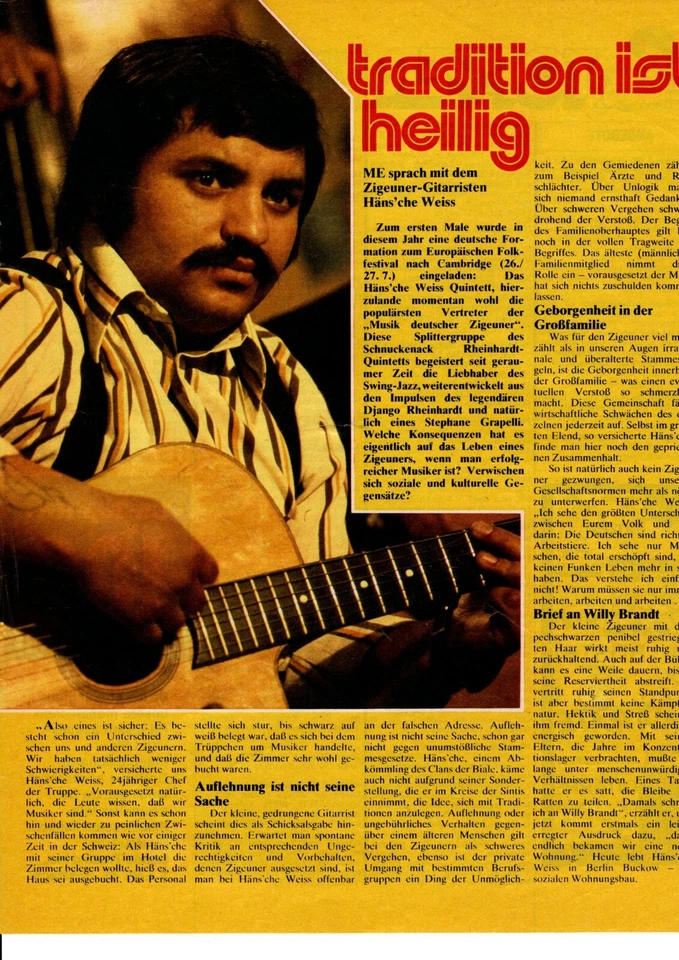 HÄNS'CHE WEISS - Clipping/Bericht aus dem Jahr 1975 - Musikzeitschrift