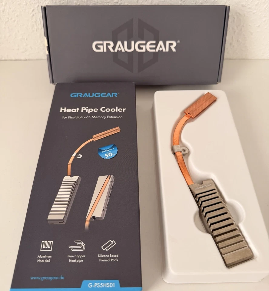 GRAUGEAR Heatpipe Kühlkörper PS5 Speichererweiterung M.2NVMe 2280 SSD Alu Kupfer