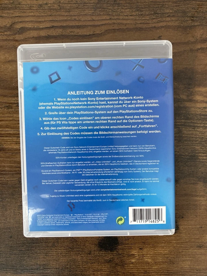 ORIGINALE PSN GUTHABEN HÜLLE AUS 2012 (KEIN GUTHABEN INKLUDIERT)