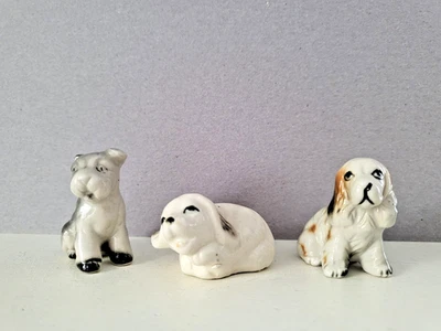 3 Miniaturen - niedliche Hunde, Keramik farbig glasiert, alt
