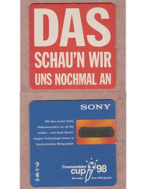 Werbe -Bierdeckel , SONY , Commentator Cup 98 " Das schau´n wir uns nochmal an "