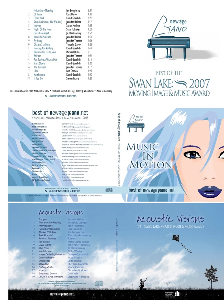 3 New Age Piano Music CDs (Swan Lake: Moving Image and Music Award 2007-2009)