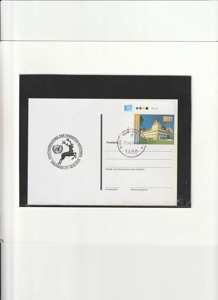 UNO Wien Beleg mit Mi. Nr. 396 Eckrand + A-Sonderstempel " GMUNDEN 30.8.15 " XX3
