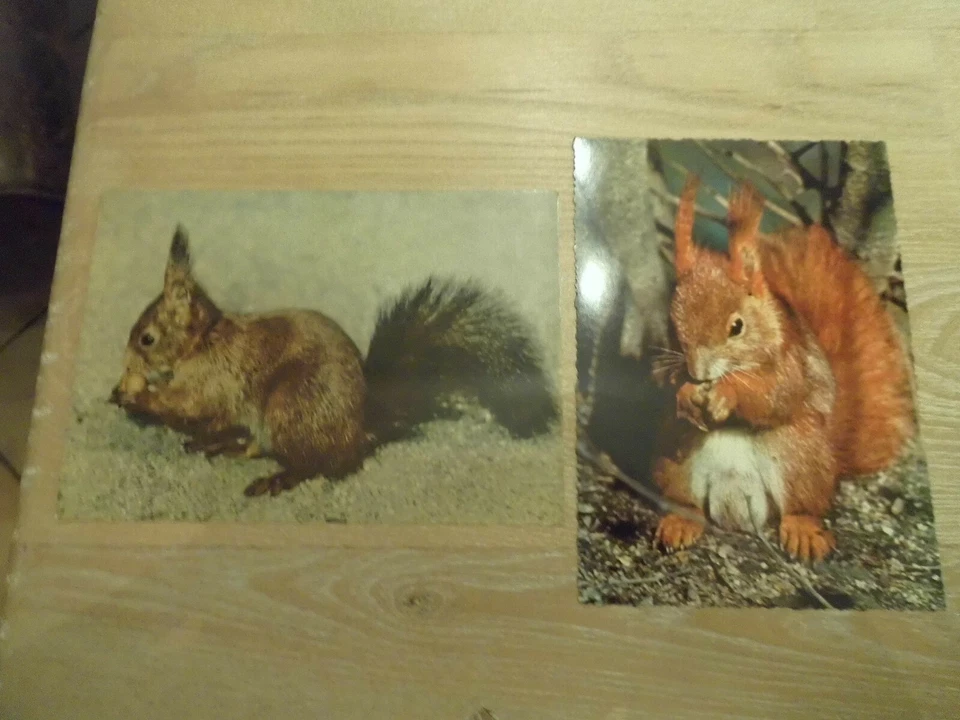 2 Stück Eichhörnchen-Postkarten, rotes und dunkles Eichhörnchen, neu