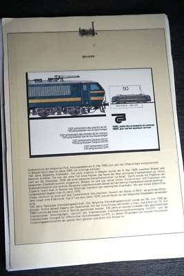 10) Briefmarken Gedenk Block Belgien 150 Jahre Eisenbahn, Rückseite Lokmotive