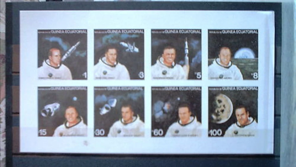 GUINEA Block geschnitten ungez. B Probedruck Space Weltraum Apollo Astronauten