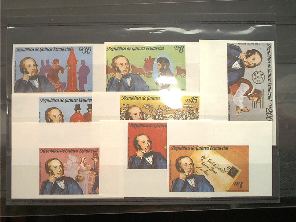 GUINEA - ungezähnt B ! Sir Rowland Hill , 8 Wert 8 x B geschnitten Probedruck