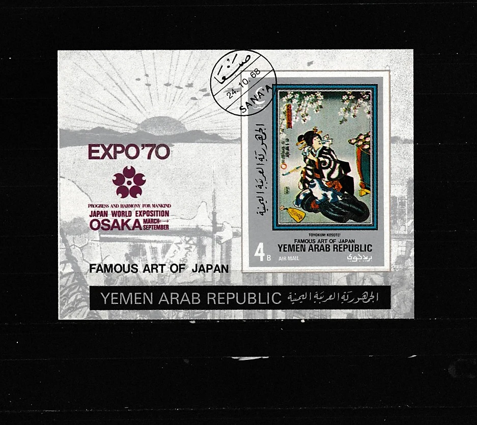 Block-Famous Art of Japan-Expo 70 Osaka --Ausgegeben 1968 aus Yemen-gestempelt