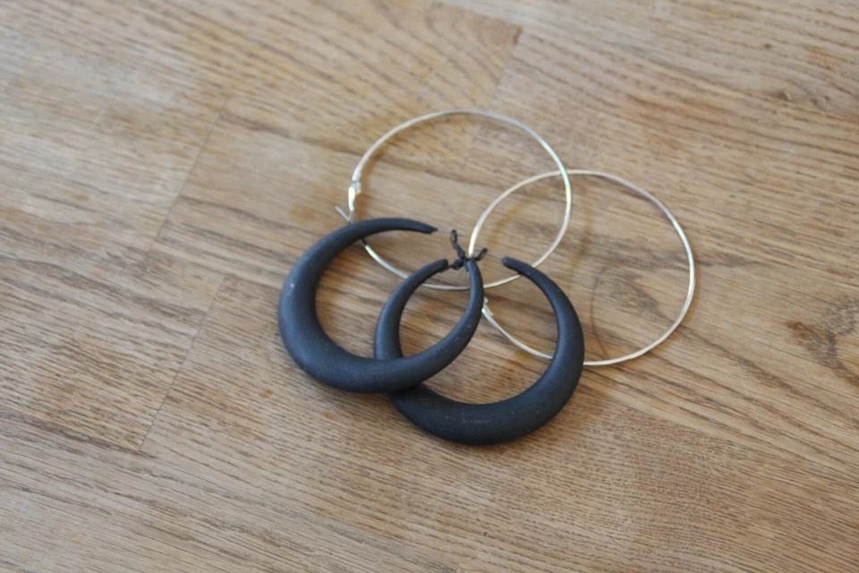 Modeschmuck Creolen-Set schwarz und Gold - groß