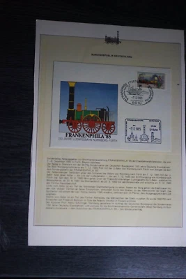 3) Briefmarke: Eisenbahn Motive mit Beschreibung, Rückseite Fotos der Eisenbahn
