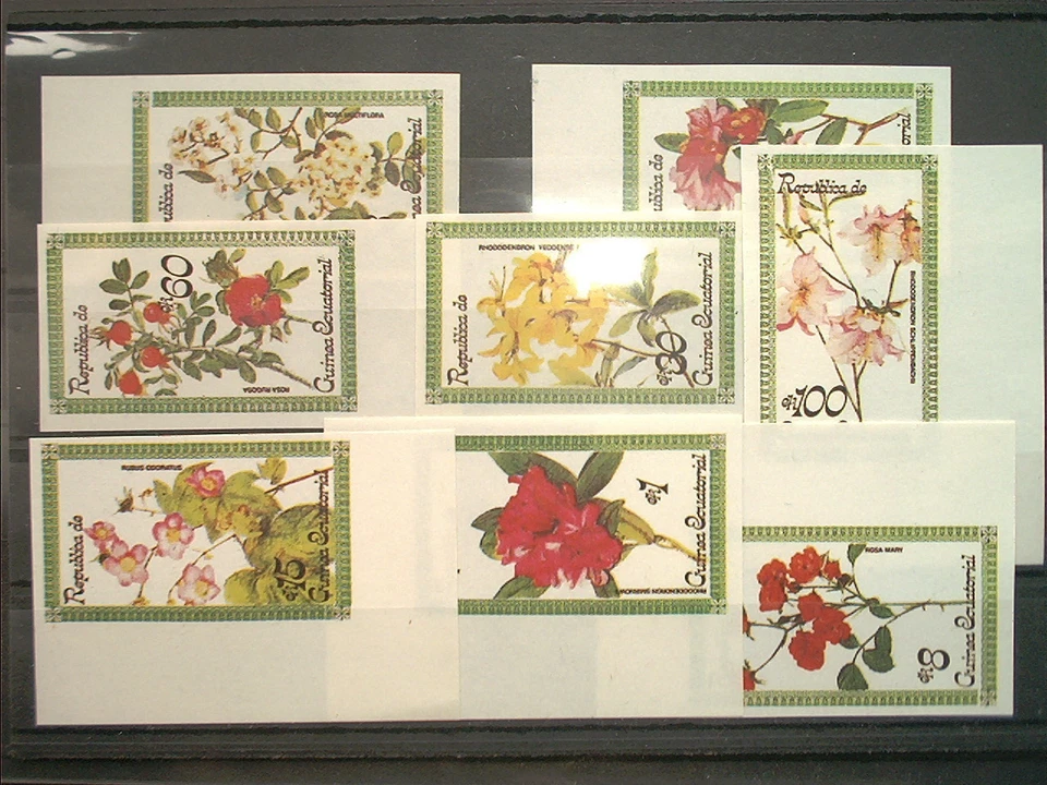 GUINEA - ungezähnt Blumen, Rosen, Orchideen 8 werte B geschnitten Probedruck