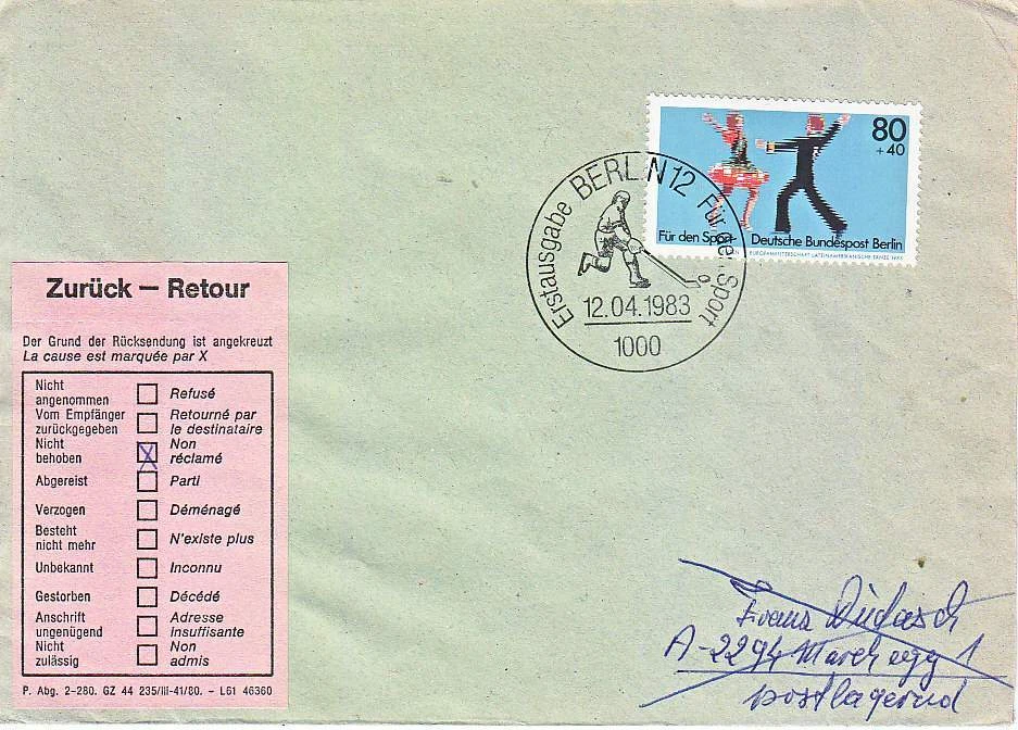 Berlin 698 FDC Für den Sport 12.4.1983