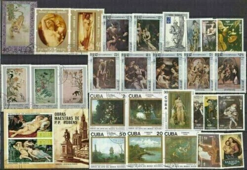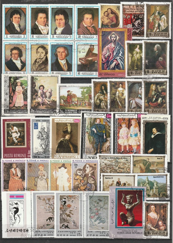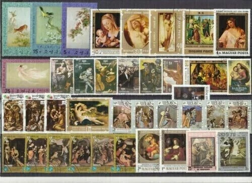 Kunst Lot mit Marken aus Ungarn mit Gemälde painting La peinture cuadro 2794