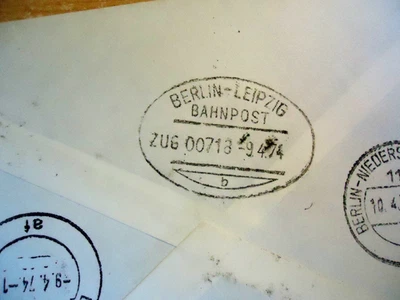 Bahnpost Berlin - Leipzig ZUG 718 am 9.4.1974 Eilsendung Leipzig