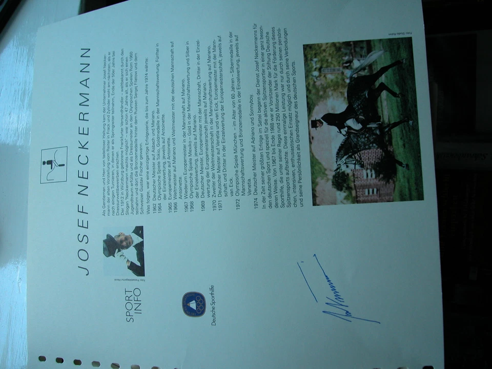 Olympiade REITEN Sporthilfe Blatt BOGEN mit aufdruck Josef Neckermann reitsport